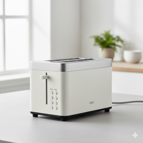 Updated Toaster Design based on visual design theory and practice of Dieter Rams (Nano Banana)