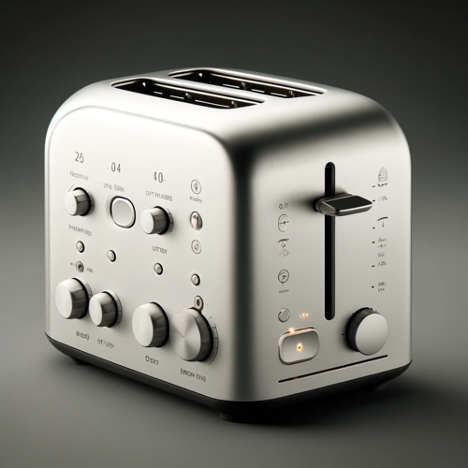 Initial toaster design based on visual design theory and practice by Dieter Rams (ChatGPT4)
