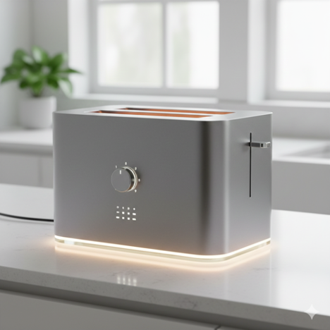 Updated toaster design based on Jony Ive visual design theory (Nano Banana)